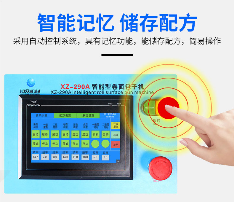XZ-290A智能型卷面包子機(jī),仿手工智能包子機(jī)。操作簡(jiǎn)單、精準(zhǔn)控制、快速成型、模擬人工。好機(jī)器,表里如一,專(zhuān)注品質(zhì)機(jī)器,客戶(hù)現(xiàn)場(chǎng)試機(jī)。一臺(tái)包子機(jī)輕松解決手工和面/包餡/人工效率低,用人成本高等一系列問(wèn)題。