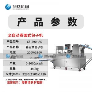 290IIAS卷面式包子機,可生產各種不同餡料的包子、各式包餡食品,如豆沙包、南瓜餅、肉包、小籠包、水晶包等幾十種包餡制品。適用于個體戶、食品廠、學校等單位食堂??蓾M足不同客戶群體。免費提供工藝技術。