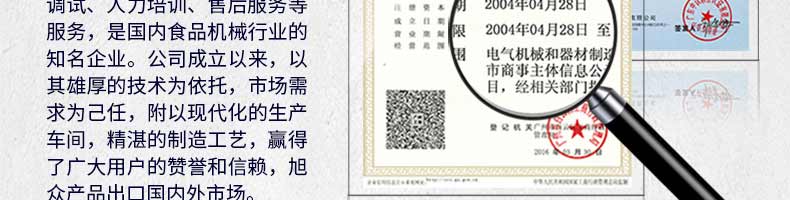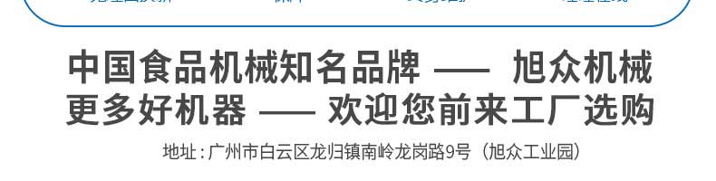 廣州旭眾食品機(jī)械有限公司是一家集科研開(kāi)發(fā),生產(chǎn)設(shè)計(jì),營(yíng)銷服務(wù)為一體的現(xiàn)代化生產(chǎn)企業(yè)?,F(xiàn)代化生產(chǎn)車間,精湛制造技術(shù),所產(chǎn)機(jī)械歷經(jīng)市場(chǎng)重重考驗(yàn),不斷贏得海內(nèi)外客戶的贊譽(yù)。