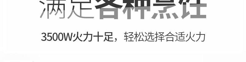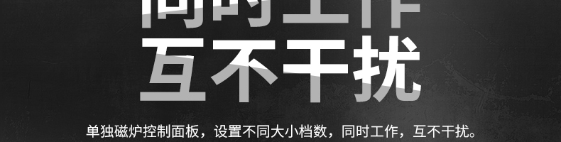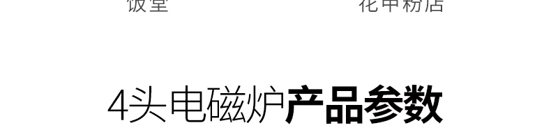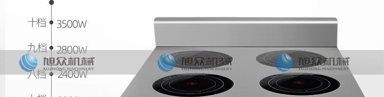 四頭柜式電磁爐,10檔調節(jié),滿足各種烹飪。3500W火力十足,輕松選擇合適火力。同時工作互不干擾單獨磁爐控制面板,設置不同大小檔數,同時工作,互不干擾。