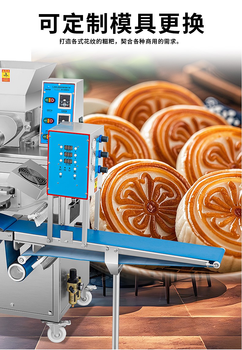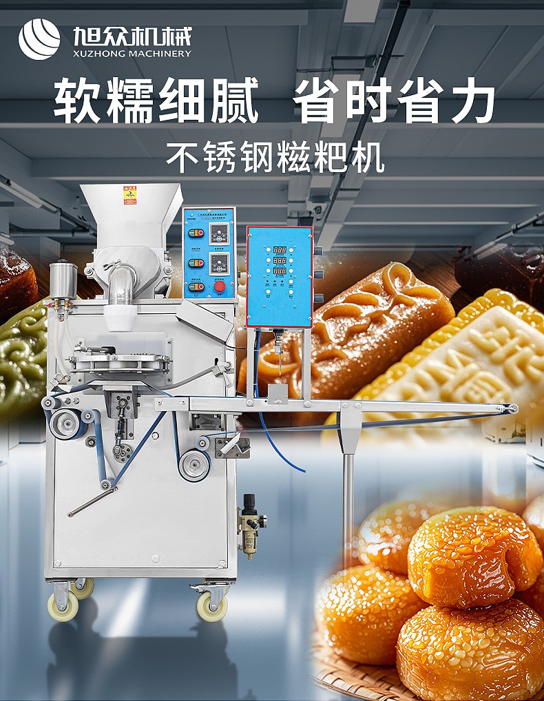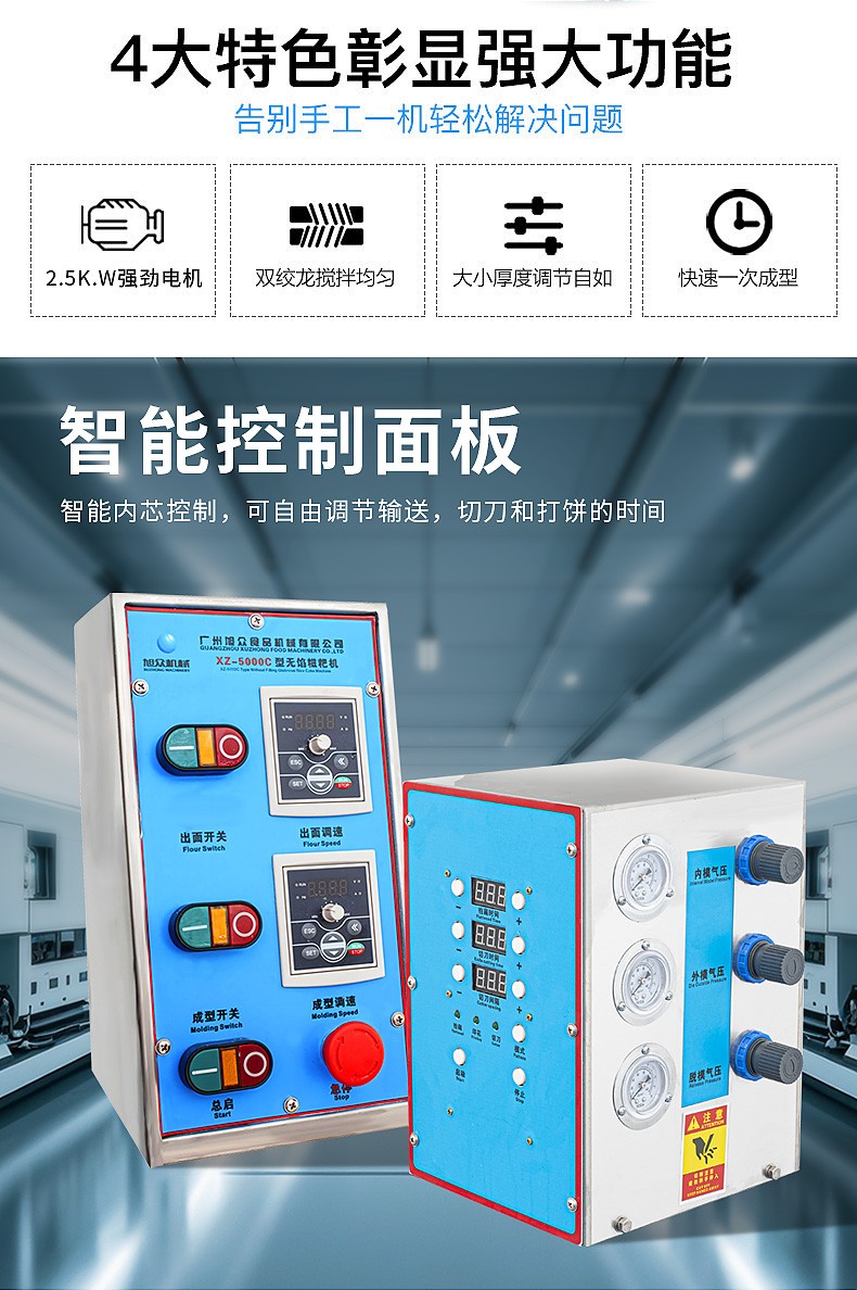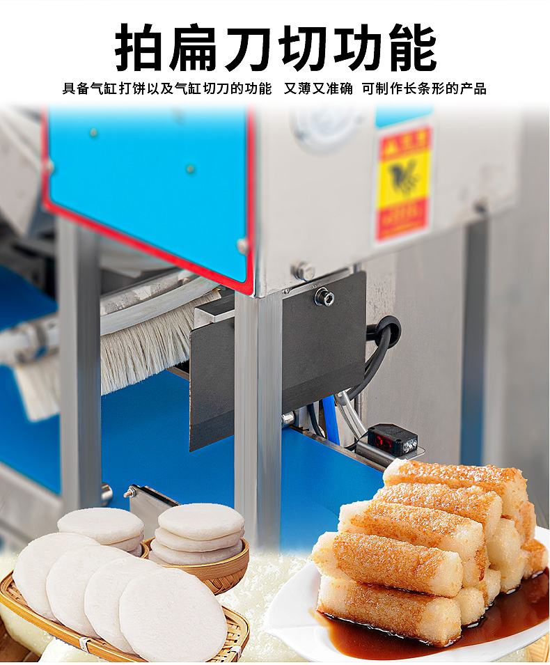 XZ-5000C糍粑機(jī),軟糯細(xì)膩、省時(shí)省力,不銹鋼糍粑機(jī)。智能控制面板,智能內(nèi)芯控制,可自由調(diào)節(jié)輸送,切刀和打餅的時(shí)間。拍扁刀切功能,具備氣缸打餅以及氣缸切刀的功能、又薄又準(zhǔn)確、可制作長條形的產(chǎn)品。