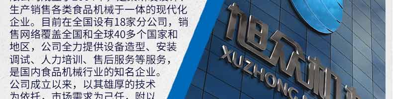 廣州旭眾食品機(jī)械有限公司是一家集科研開發(fā),生產(chǎn)設(shè)計,營銷服務(wù)為一體的現(xiàn)代化生產(chǎn)企業(yè)?,F(xiàn)代化生產(chǎn)車間,精湛制造技術(shù),所產(chǎn)機(jī)械歷經(jīng)市場重重考驗,不斷贏得海內(nèi)外客戶的贊譽(yù)。