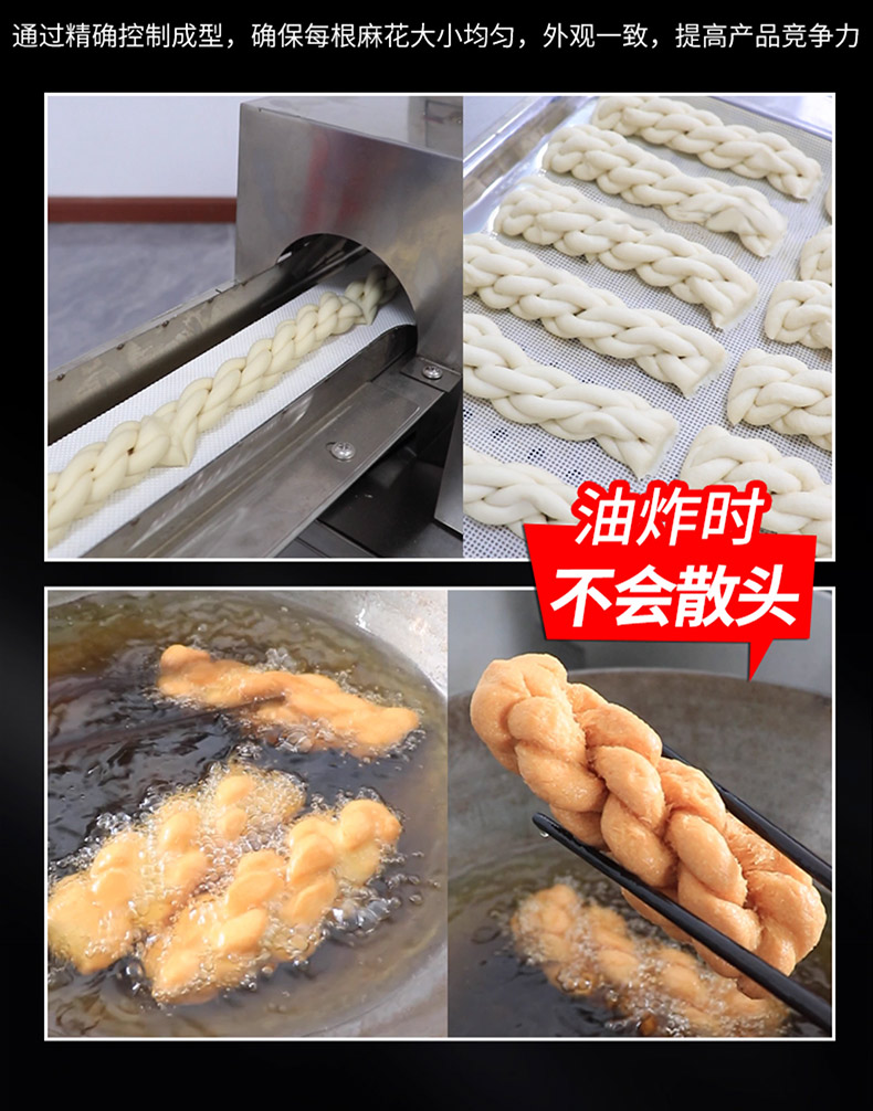 XZ-MH-200麻花機,技術(shù)支持、贈送配方、支持定制,1小時加工60斤麻花。切段均勺、且不粘面,麻花長短可調(diào)。可通過調(diào)節(jié)切刀時間、控制麻花的長度。通過精確控制成型,確保每根麻花大小均勻,外觀一致,提高產(chǎn)品競爭力。
