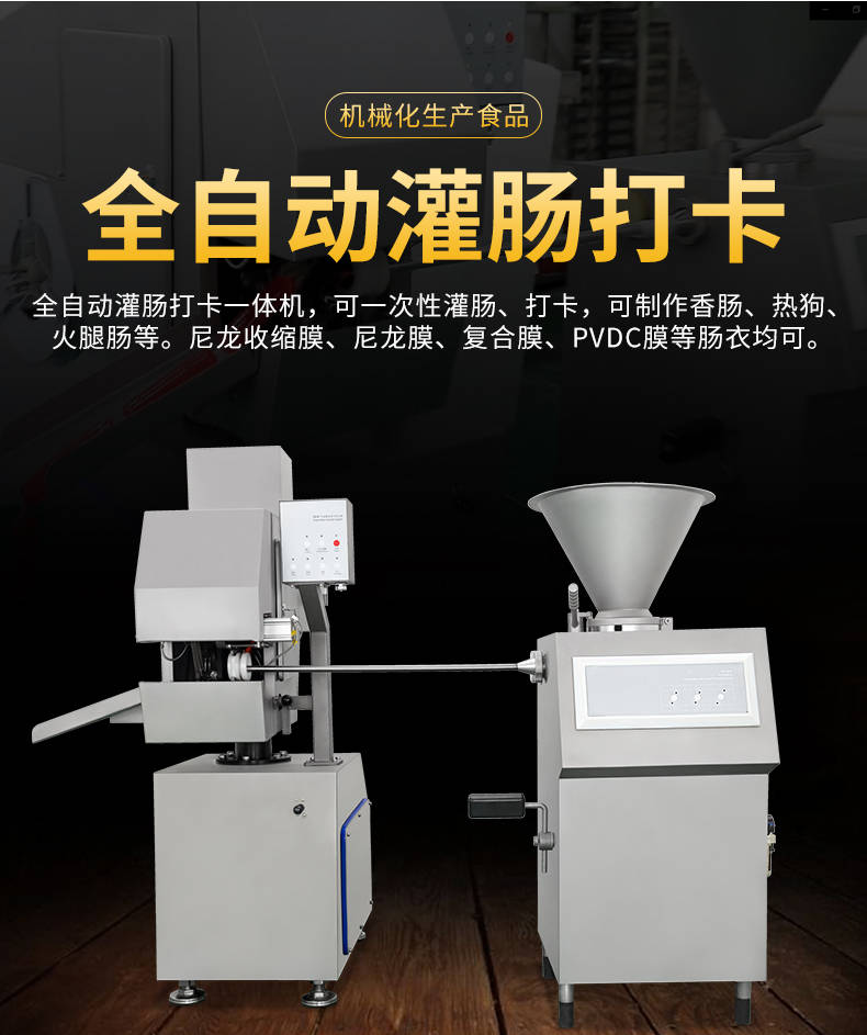 XZ-I型自動(dòng)定量灌腸機(jī),使用優(yōu)質(zhì)不銹鋼制造,符合食品機(jī)械的要求,只需1人操作,特別適合中小型肉食加工廠使用,以各種畜禽類肉糜為原料的香腸、火腿腸、熱狗等天然腸衣、蛋白腸衣、煙熏腸衣等制品,可以灌制定重量單腸,也可連續(xù)灌制長腸。