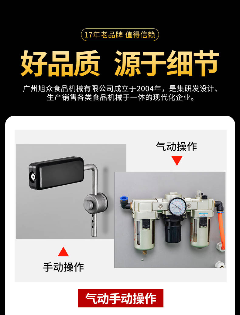 廣州旭眾食品機(jī)械有限公司是一家集科研開發(fā),生產(chǎn)設(shè)計(jì),營銷服務(wù)為一體的現(xiàn)代化生產(chǎn)企業(yè)?,F(xiàn)代化生產(chǎn)車間,精湛制造技術(shù),所產(chǎn)機(jī)械歷經(jīng)市場重重考驗(yàn),不斷贏得海內(nèi)外客戶的贊譽(yù)。