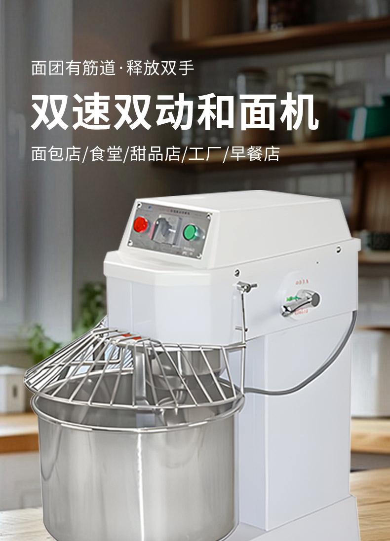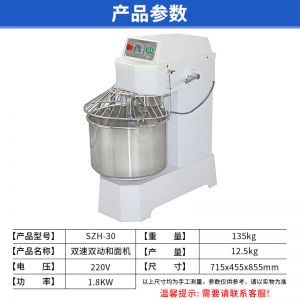 SZH-30型雙速雙動和面機,本機適合攪拌各種面包、包子、饅頭、湯圓、披薩餅面團,專業(yè)設(shè)計避免面團過分升溫并確保面團含氧量。過載、缺相保護裝置,防護罩安全連動裝置。