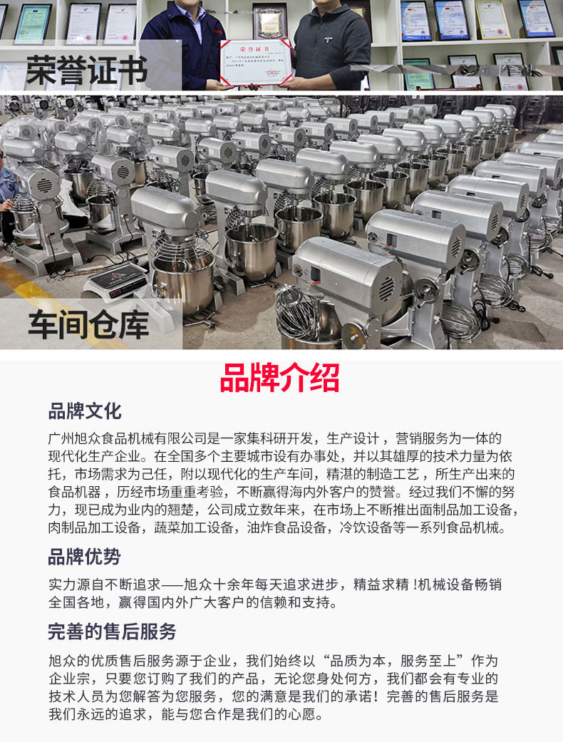 廣州旭眾食品機械有限公司是一家集科研開發(fā),生產(chǎn)設(shè)計,營銷服務為一體的現(xiàn)代化生產(chǎn)企業(yè)?,F(xiàn)代化生產(chǎn)車間,精湛制造技術(shù),所產(chǎn)機械歷經(jīng)市場重重考驗,不斷贏得海內(nèi)外客戶的贊譽。
