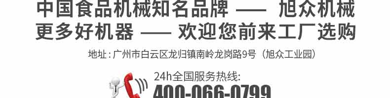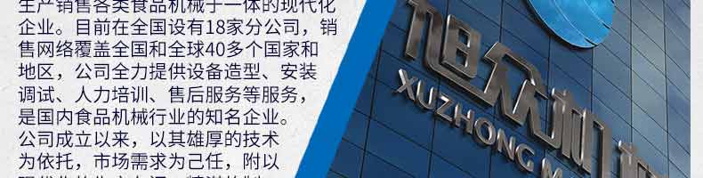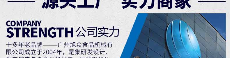 廣州旭眾食品機(jī)械有限公司是一家集科研開發(fā),生產(chǎn)設(shè)計,營銷服務(wù)為一體的現(xiàn)代化生產(chǎn)企業(yè)?,F(xiàn)代化生產(chǎn)車間,精湛制造技術(shù),所產(chǎn)機(jī)械歷經(jīng)市場重重考驗,不斷贏得海內(nèi)外客戶的贊譽。