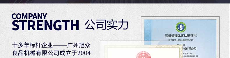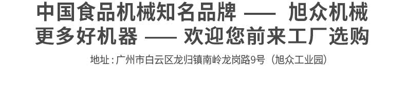 廣州旭眾食品機(jī)械有限公司是一家集科研開發(fā),生產(chǎn)設(shè)計(jì),營銷服務(wù)為一體的現(xiàn)代化生產(chǎn)企業(yè)?,F(xiàn)代化生產(chǎn)車間,精湛制造技術(shù),所產(chǎn)機(jī)械歷經(jīng)市場重重考驗(yàn),不斷贏得海內(nèi)外客戶的贊譽(yù)。