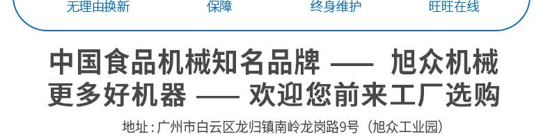 廣州旭眾食品機械有限公司是一家集科研開發(fā),生產(chǎn)設(shè)計,營銷服務(wù)為一體的現(xiàn)代化生產(chǎn)企業(yè)?,F(xiàn)代化生產(chǎn)車間,精湛制造技術(shù),所產(chǎn)機械歷經(jīng)市場重重考驗,不斷贏得海內(nèi)外客戶的贊譽。