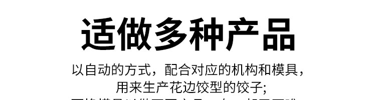 JGB-10型一體式餃子機(jī),制皮成型一體餃子機(jī),科技化生產(chǎn)/人性化設(shè)計(jì)。餃型可蒸、可炸、可煮,可適應(yīng)不同場(chǎng)合的客戶需求。功能、智能一體,以自動(dòng)化科技與過硬質(zhì)量貼心服務(wù)。