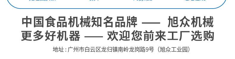 廣州旭眾食品機(jī)械有限公司是一家集科研開發(fā),生產(chǎn)設(shè)計(jì),營銷服務(wù)為一體的現(xiàn)代化生產(chǎn)企業(yè)。現(xiàn)代化生產(chǎn)車間,精湛制造技術(shù),所產(chǎn)機(jī)械歷經(jīng)市場(chǎng)重重考驗(yàn),不斷贏得海內(nèi)外客戶的贊譽(yù)。