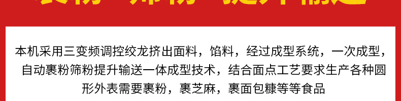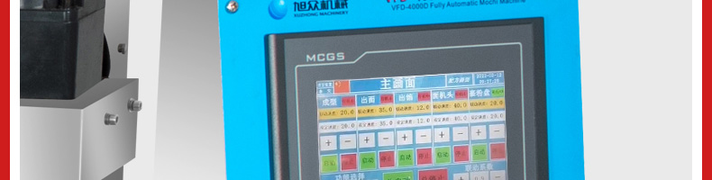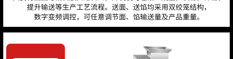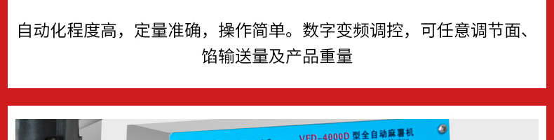 VFD-4000D麻薯機,操作簡單定量準確只要將面團與餡料放入進料口,開機便可包餡、成型,裹粉,篩粉,提升輸送等生產(chǎn)工藝流程。送面、送餡均采用雙絞籠結(jié)構(gòu),數(shù)字變頻調(diào)控,可任意調(diào)節(jié)面、餡輸送量及產(chǎn)品重量。