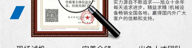 廣州旭眾食品機(jī)械有限公司是一家集科研開發(fā),生產(chǎn)設(shè)計,營銷服務(wù)為一體的現(xiàn)代化生產(chǎn)企業(yè)。現(xiàn)代化生產(chǎn)車間,精湛制造技術(shù),所產(chǎn)機(jī)械歷經(jīng)市場重重考驗,不斷贏得海內(nèi)外客戶的贊譽(yù)。