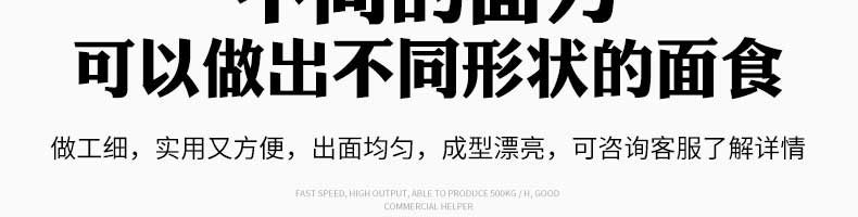 MT5-260型面條機(jī),不同的面刀可以做出不同形狀的面食做工細(xì),實(shí)用又方便,出面均勻,成型漂亮,可咨洵客服了解詳情