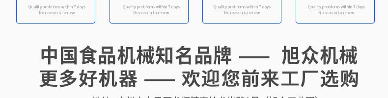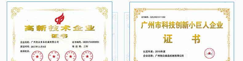 廣州旭眾食品機(jī)械有限公司是一家集科研開(kāi)發(fā),生產(chǎn)設(shè)計(jì),營(yíng)銷服務(wù)為一體的現(xiàn)代化生產(chǎn)企業(yè)?,F(xiàn)代化生產(chǎn)車間,精湛制造技術(shù),所產(chǎn)機(jī)械歷經(jīng)市場(chǎng)重重考驗(yàn),不斷贏得海內(nèi)外客戶的贊譽(yù)。