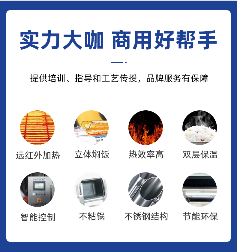 機(jī)械手全自動米飯生產(chǎn)線,實力大咖 商用好幫手,提供培訓(xùn)、指導(dǎo)和工藝傳授,品牌服務(wù)有保障。遠(yuǎn)紅外加熱、智能控制、立體燜飯、不粘鍋、熱效率高、不銹鋼結(jié)構(gòu)、雙層保溫、節(jié)能環(huán)保。