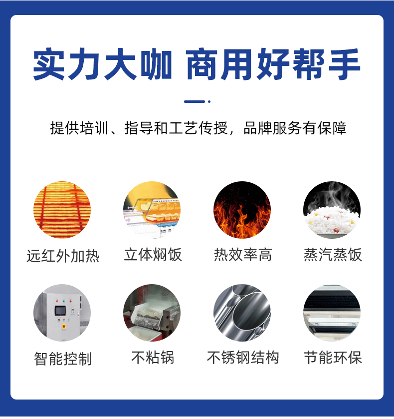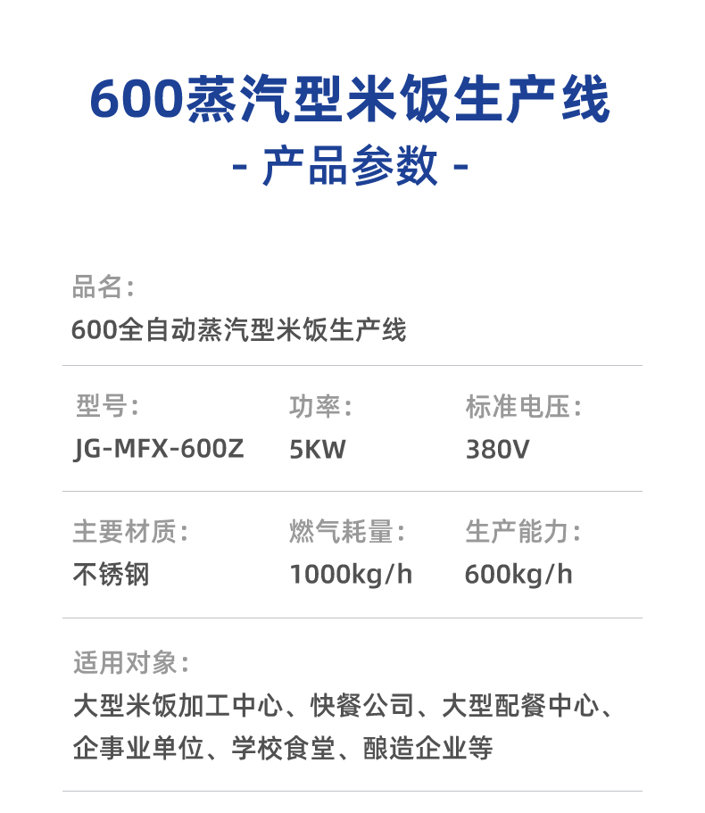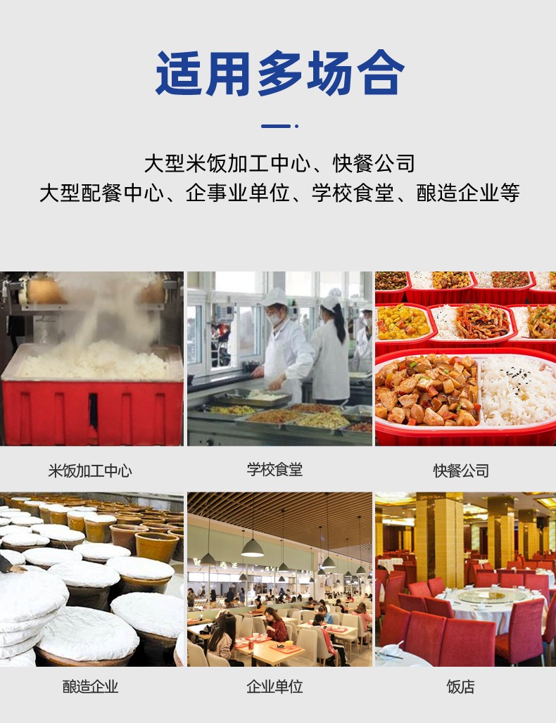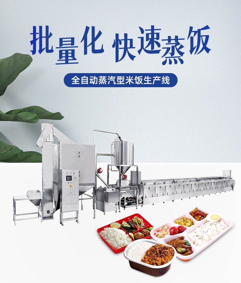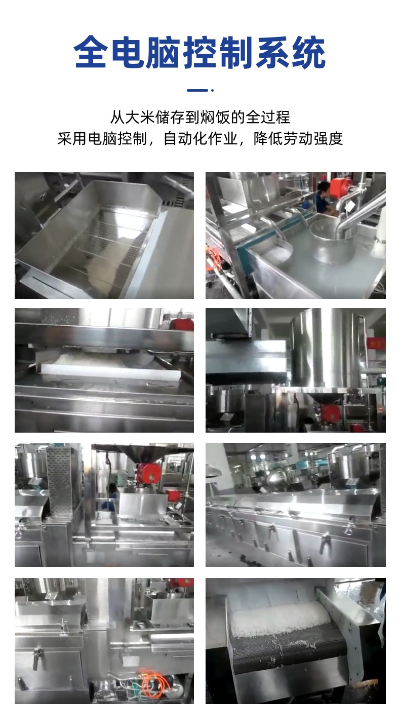 全自動蒸汽型米飯生產(chǎn)線,全電腦控制系統(tǒng),從大米儲存到燜飯的全過程采用電腦控制,自動化作業(yè),降低勞動強度。實現(xiàn)全自動生產(chǎn),多功能,一機多用,可以用于在蒸制各種食物實現(xiàn)全自動生產(chǎn),無需人工服務。