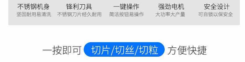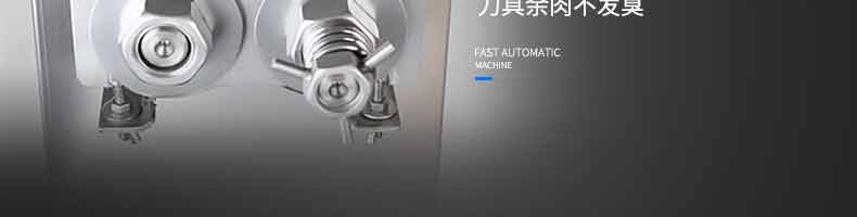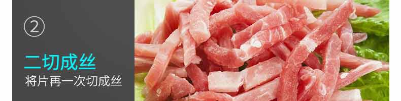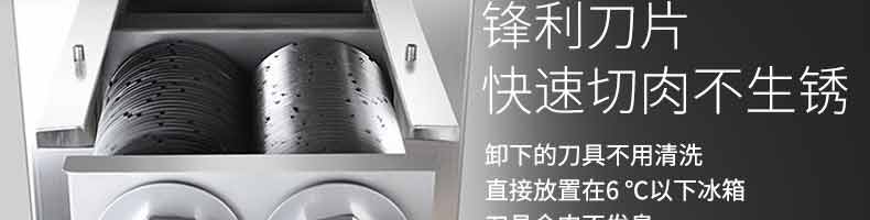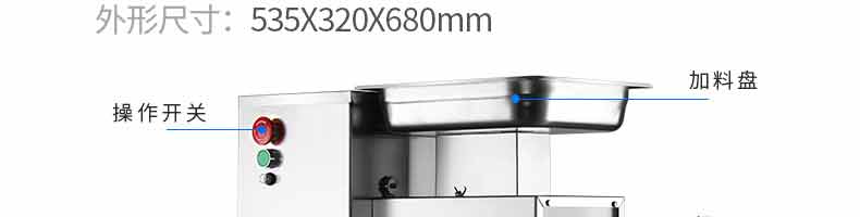 XZ-QX320-切肉機(jī),小型切肉機(jī)是一款主要對肉類進(jìn)行加工的設(shè)備,配置單層刀具一次性切肉片,二次切肉絲,再切成料。刀具采取外置懸臂式設(shè)計,拆洗方便,衛(wèi)生更有保障;配置多種刀具,可加工不同厚度的肉片,實(shí)現(xiàn)一機(jī)多用;機(jī)內(nèi)裝有安全保護(hù)開頭,刀具外露時,機(jī)器自鎖不能啟動,以保安全;卸下的刀具,不用清洗直接放置在6攝氏度以下的冰箱里,刀具余肉不發(fā)臭。刀片用特殊不銹鋼材料制造,經(jīng)久耐用。