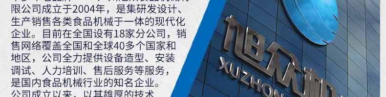 廣州旭眾食品機(jī)械有限公司是一家集科研開發(fā),生產(chǎn)設(shè)計,營銷服務(wù)為一體的現(xiàn)代化生產(chǎn)企業(yè)?,F(xiàn)代化生產(chǎn)車間,精湛制造技術(shù),所產(chǎn)機(jī)械歷經(jīng)市場重重考驗,不斷贏得海內(nèi)外客戶的贊譽(yù)。