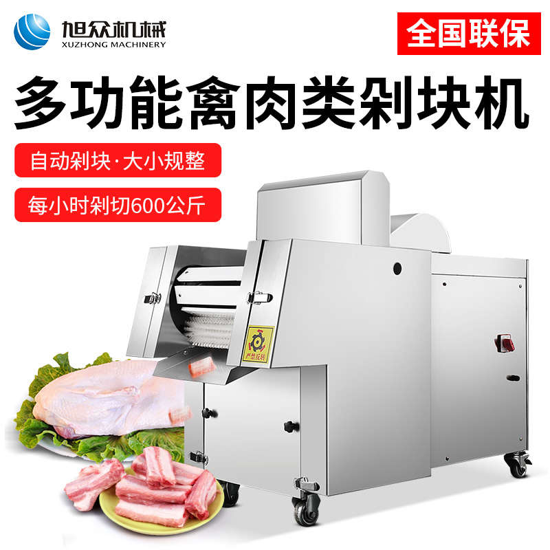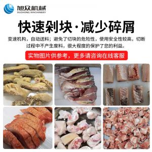 XZW-130禽肉類剁塊機(jī),手工剁肉的煩惱人工切骨頭費時費力,效率低并且人工成本高,而且也是一個危險程度高的活,尤其是切大骨頭的時候,一不小心就會傷到手手工剁肉費時費力成本高。旭眾禽肉類剁塊機(jī)幫你解決手工煩惱每小時可剁切600公斤。