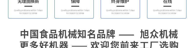 廣州旭眾食品機(jī)械有限公司是一家集科研開發(fā),生產(chǎn)設(shè)計(jì),營銷服務(wù)為一體的現(xiàn)代化生產(chǎn)企業(yè)?,F(xiàn)代化生產(chǎn)車間,精湛制造技術(shù),所產(chǎn)機(jī)械歷經(jīng)市場(chǎng)重重考驗(yàn),不斷贏得海內(nèi)外客戶的贊譽(yù)。