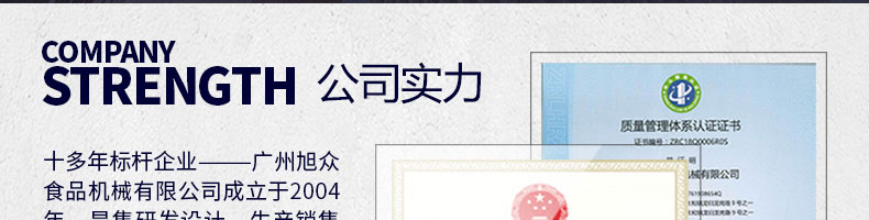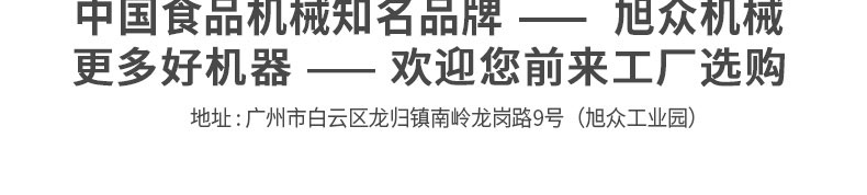 廣州旭眾食品機(jī)械有限公司是一家集科研開發(fā),生產(chǎn)設(shè)計,營銷服務(wù)為一體的現(xiàn)代化生產(chǎn)企業(yè)?,F(xiàn)代化生產(chǎn)車間,精湛制造技術(shù),所產(chǎn)機(jī)械歷經(jīng)市場重重考驗,不斷贏得海內(nèi)外客戶的贊譽(yù)。
