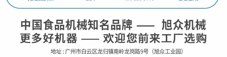 廣州旭眾食品機械有限公司是一家集科研開發(fā),生產(chǎn)設(shè)計,營銷服務(wù)為一體的現(xiàn)代化生產(chǎn)企業(yè)?,F(xiàn)代化生產(chǎn)車間,精湛制造技術(shù),所產(chǎn)機械歷經(jīng)市場重重考驗,不斷贏得海內(nèi)外客戶的贊譽。