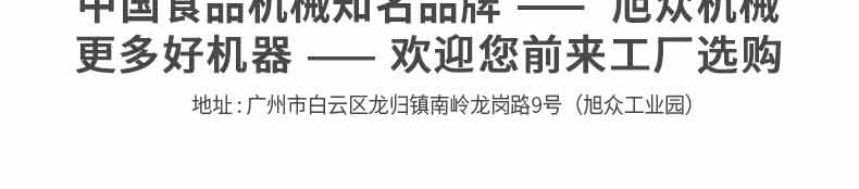 廣州旭眾食品機(jī)械有限公司是一家集科研開發(fā),生產(chǎn)設(shè)計(jì),營銷服務(wù)為一體的現(xiàn)代化生產(chǎn)企業(yè)?,F(xiàn)代化生產(chǎn)車間,精湛制造技術(shù),所產(chǎn)機(jī)械歷經(jīng)市場重重考驗(yàn),不斷贏得海內(nèi)外客戶的贊譽(yù)。