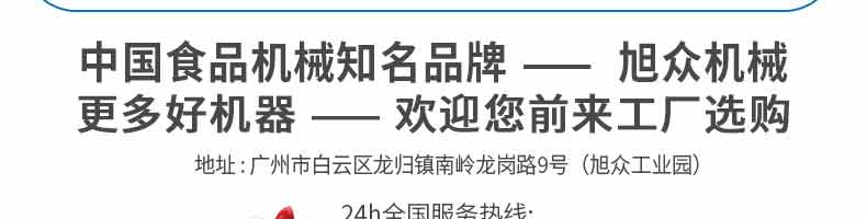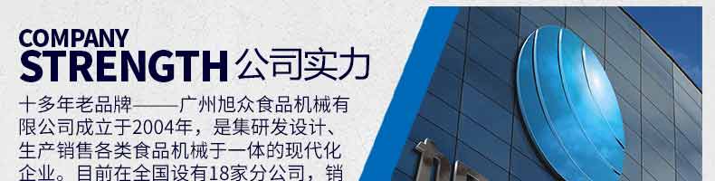 廣州旭眾食品機(jī)械有限公司是一家集科研開發(fā),生產(chǎn)設(shè)計,營銷服務(wù)為一體的現(xiàn)代化生產(chǎn)企業(yè)。現(xiàn)代化生產(chǎn)車間,精湛制造技術(shù),所產(chǎn)機(jī)械歷經(jīng)市場重重考驗,不斷贏得海內(nèi)外客戶的贊譽(yù)。