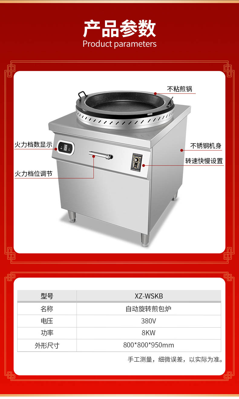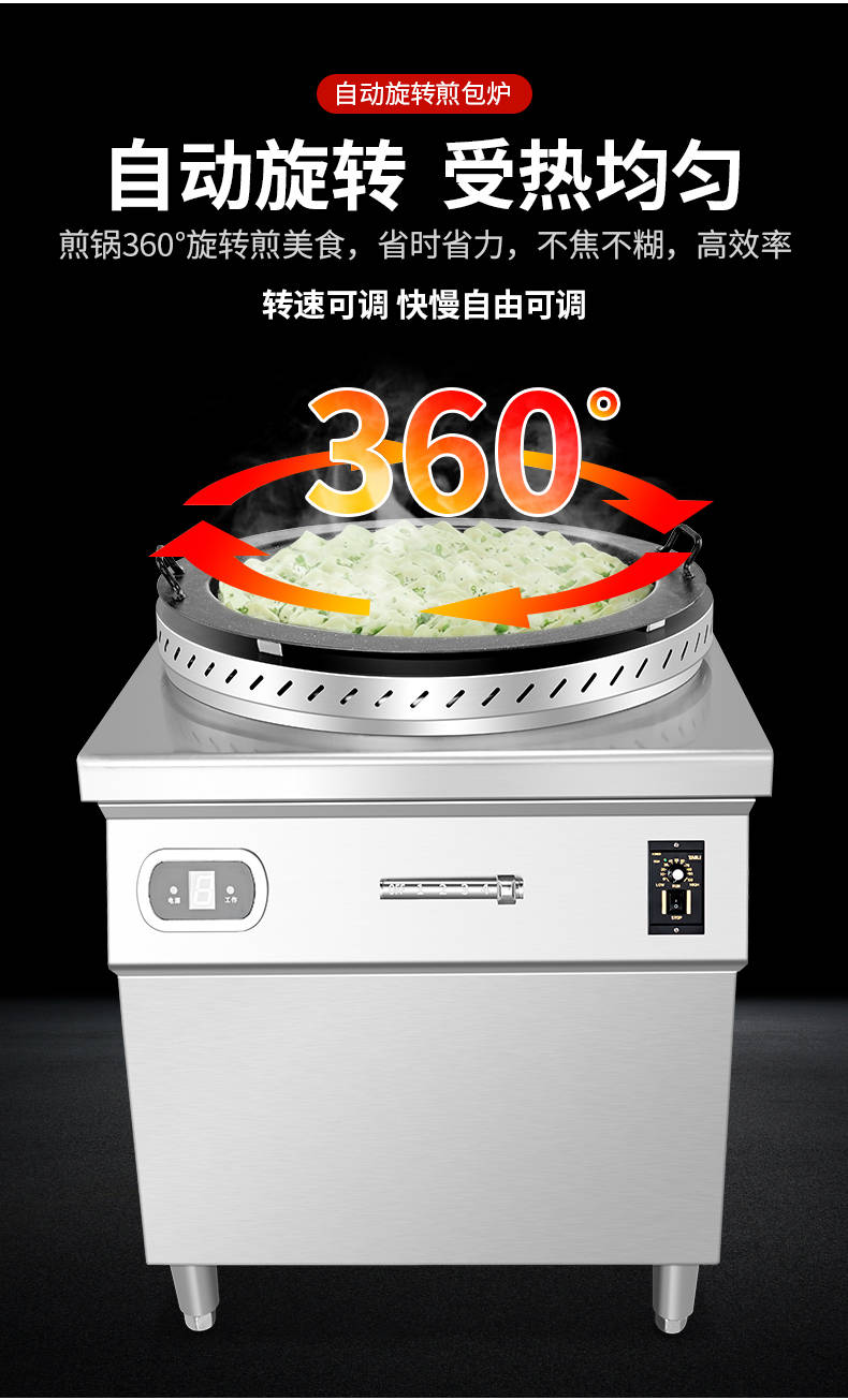 XZ-WSKB自動旋轉煎包爐,煎制各種美食鍋在手,各種煎包煎餃煎美食,輕松搞定。自動旋轉、受熱均勻煎鍋360°旋轉煎美食,省時省力,不焦不糊,高效率轉速可調(diào)快慢自由可調(diào)。