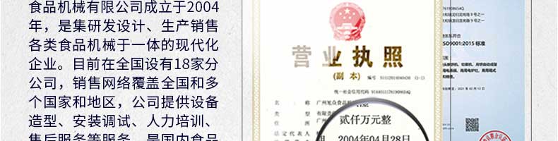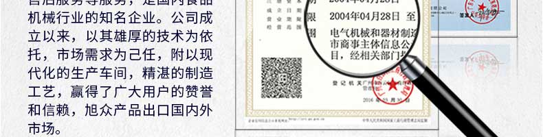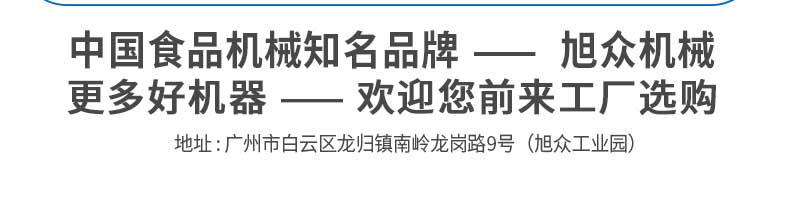 廣州旭眾食品機(jī)械有限公司是一家集科研開發(fā),生產(chǎn)設(shè)計,營銷服務(wù)為一體的現(xiàn)代化生產(chǎn)企業(yè)?,F(xiàn)代化生產(chǎn)車間,精湛制造技術(shù),所產(chǎn)機(jī)械歷經(jīng)市場重重考驗(yàn),不斷贏得海內(nèi)外客戶的贊譽(yù)。