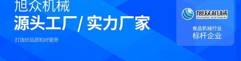 廣州旭眾食品機(jī)械有限公司是一家集科研開發(fā),生產(chǎn)設(shè)計(jì),營銷服務(wù)為一體的現(xiàn)代化生產(chǎn)企業(yè)?,F(xiàn)代化生產(chǎn)車間,精湛制造技術(shù),所產(chǎn)機(jī)械歷經(jīng)市場(chǎng)重重考驗(yàn),不斷贏得海內(nèi)外客戶的贊譽(yù)。