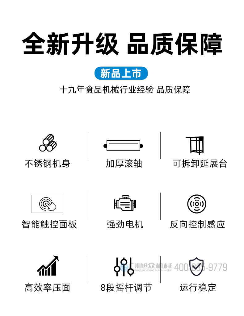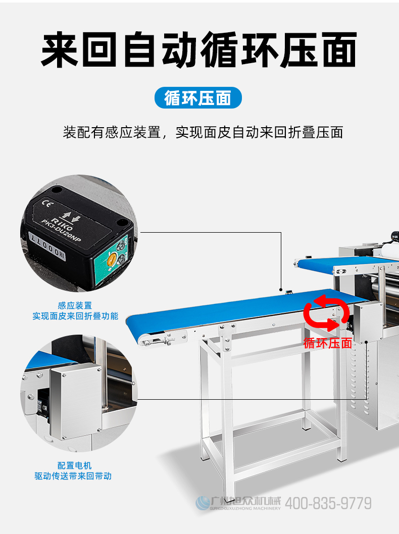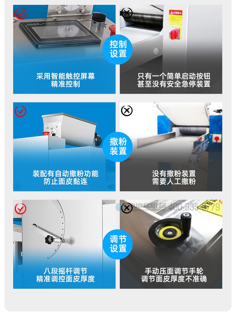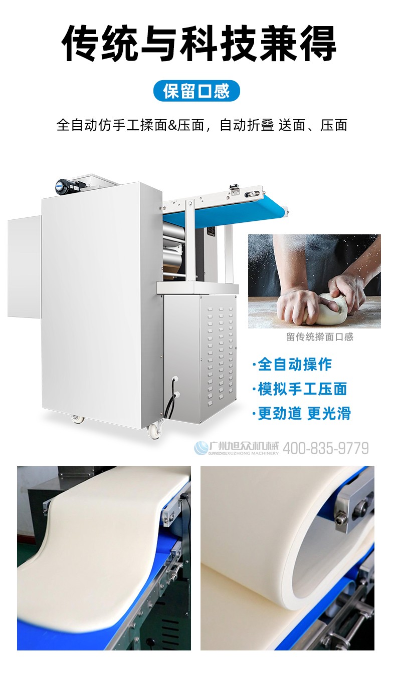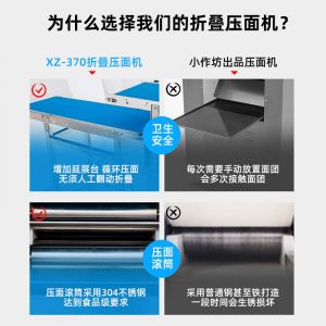 XZ-ZDYMJ370型自動折疊壓面機,整機不銹鋼機身打造,真材實料,選用不銹鋼材質(zhì),打造經(jīng)久耐用、防腐蝕。匠心細節(jié),彰顯品質(zhì)貼心設計。一鍵設定壓面次數(shù),智能定時,只需設定好壓面次數(shù),就能全自動壓面出面。