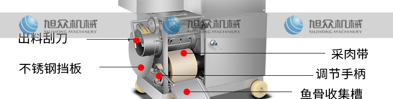 XZC-160型魚肉采肉機,去刺干凈、高效出肉。加工魚肉去刺、蟹蝦去殼等。手工去魚刺太累了,傳統(tǒng)的魚糜加工中,手工去魚皮魚刺,既費時又費力不小心就會傷到手。